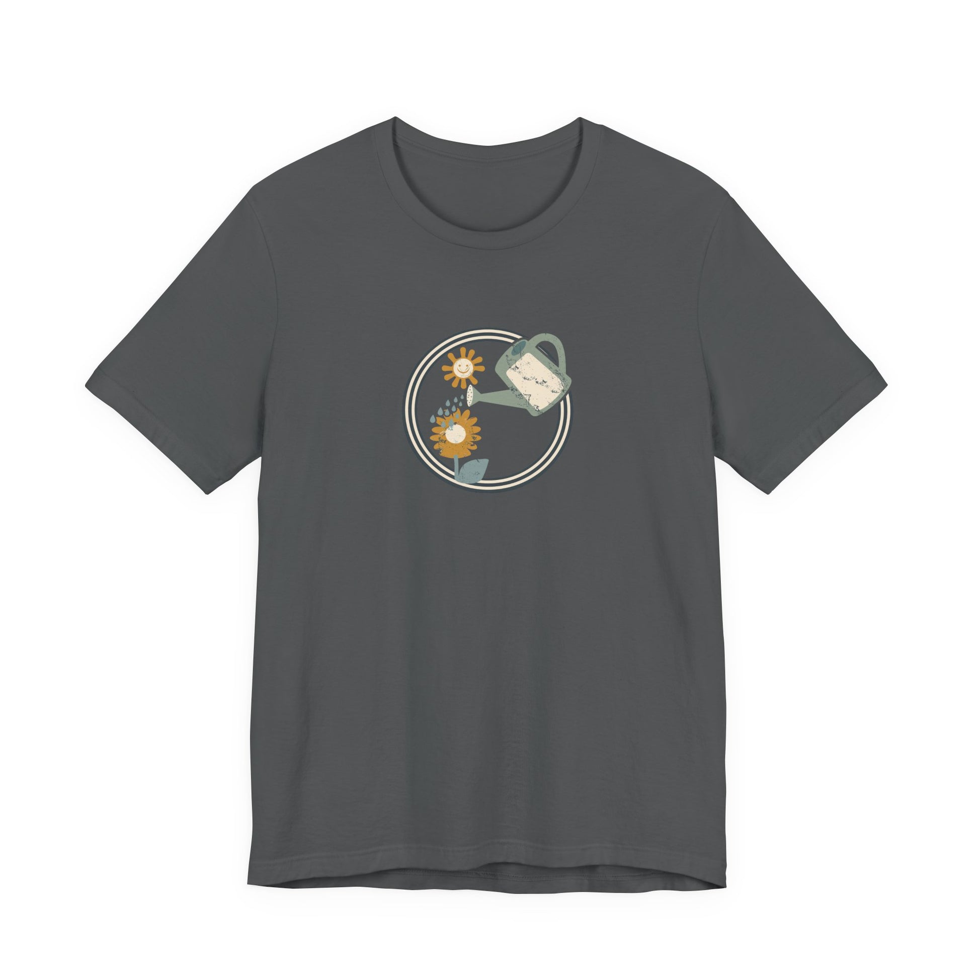 Retro Garten T-Shirt – Gießkanne & Blumen Design